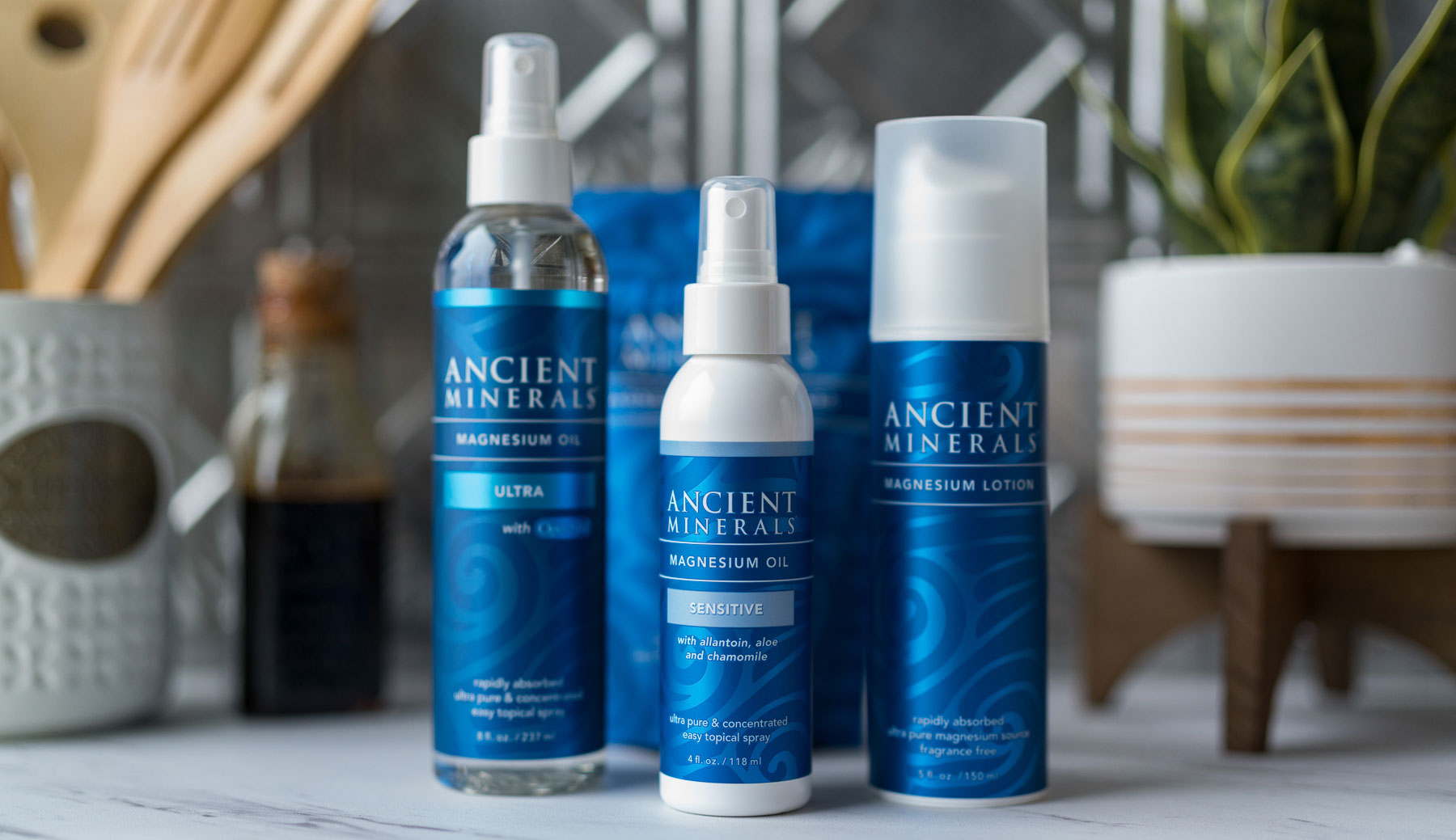 Magnesium förekommer i många kemiska föreningar i naturen. Magnesiumklorid (MgCl₂) som finns i Ancient Minerals, har dubbla användningsområden. Det löser upp döda hudceller och det återfuktar huden eftersom magnesium drar till sig vatten. De små magnesiumjonerna kan lätt ta sig igenom huden till underliggande muskelceller samt ut i cirkulationen.